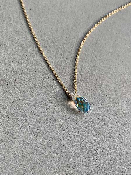 Rainbow Unicorn Teardrop Crystal Necklace